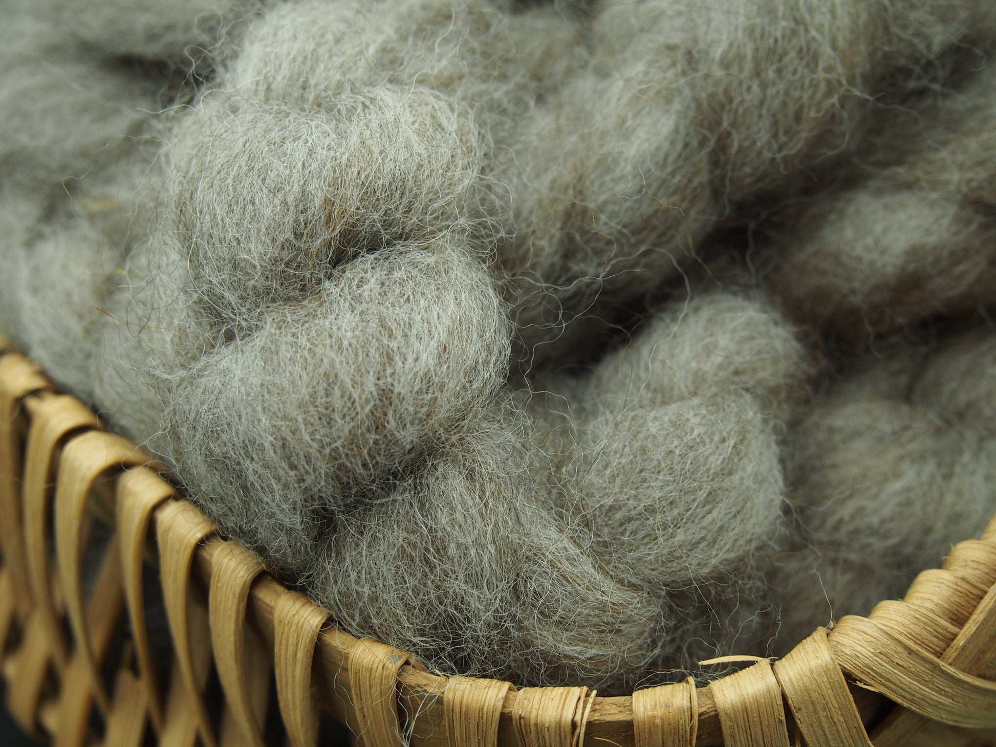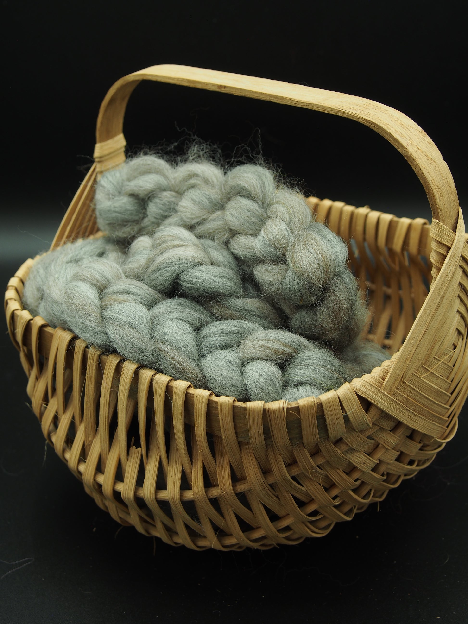 Cool Gray Alpaca Easy to spin. Luxurious. Will create a yarn with drape.