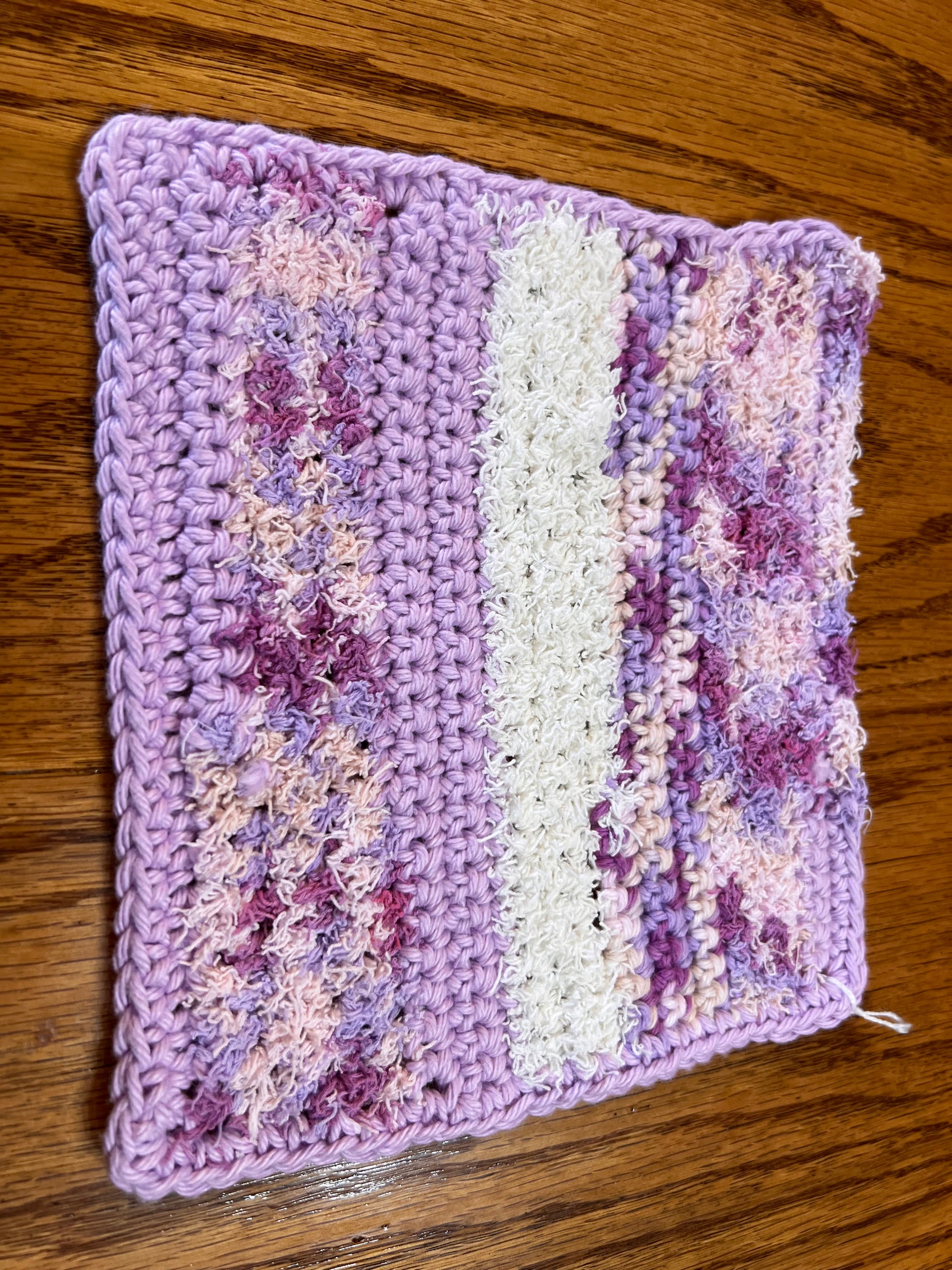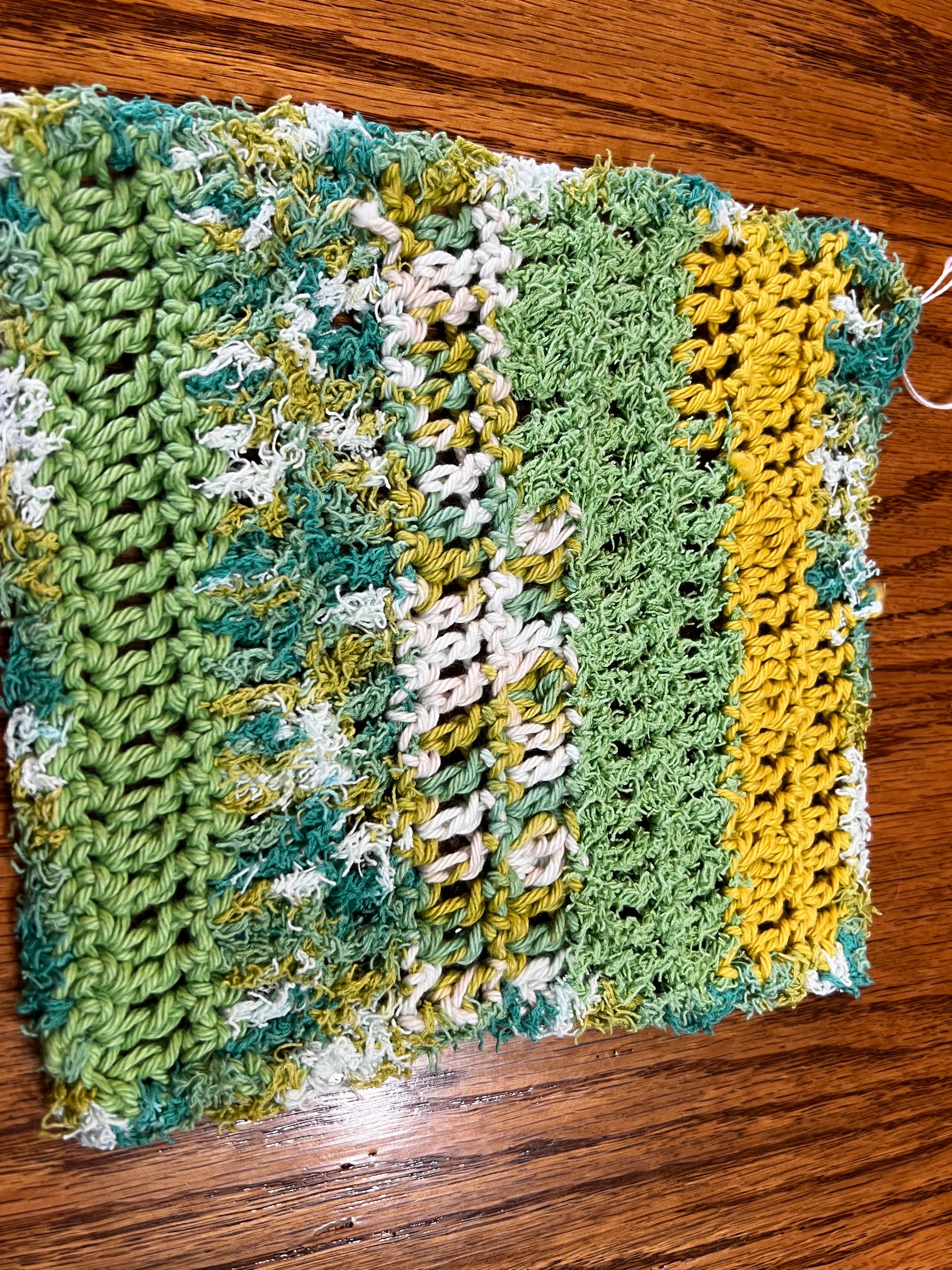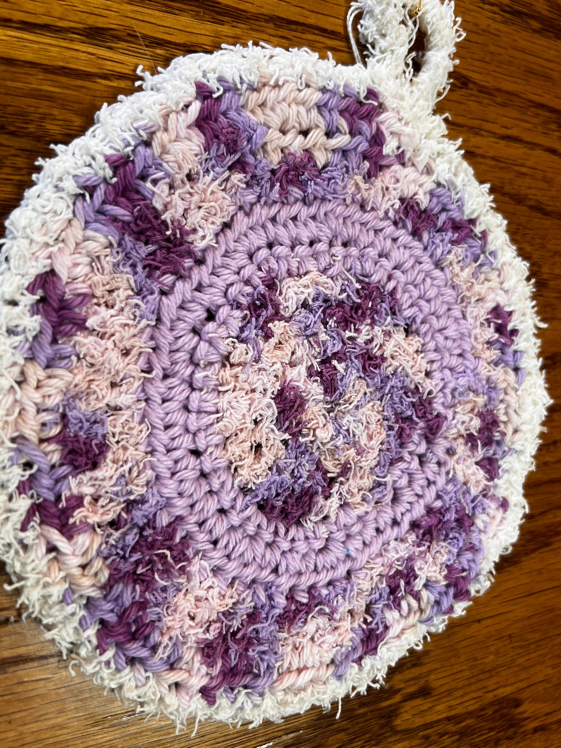 Exfoliating wash cloth or kitchen scrub cloth. Made from a combination of cotton and nylon. Many people use these in the kitchen but I like to use them for gentle exfoliation on elbows, knees and feet. None scratch.
