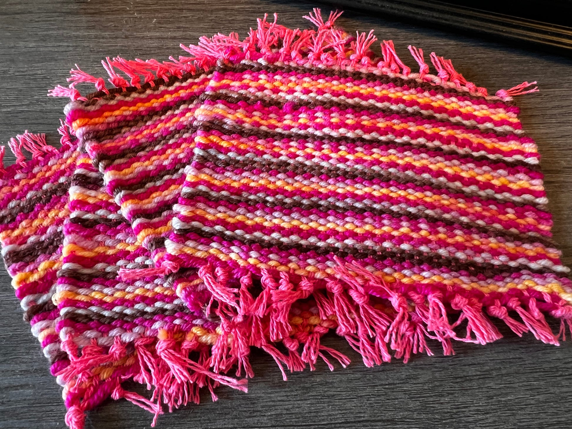 Woven from cotton to bring a colorful look to your table. Absorbent and durable. Protects your tables. Set of 4.
