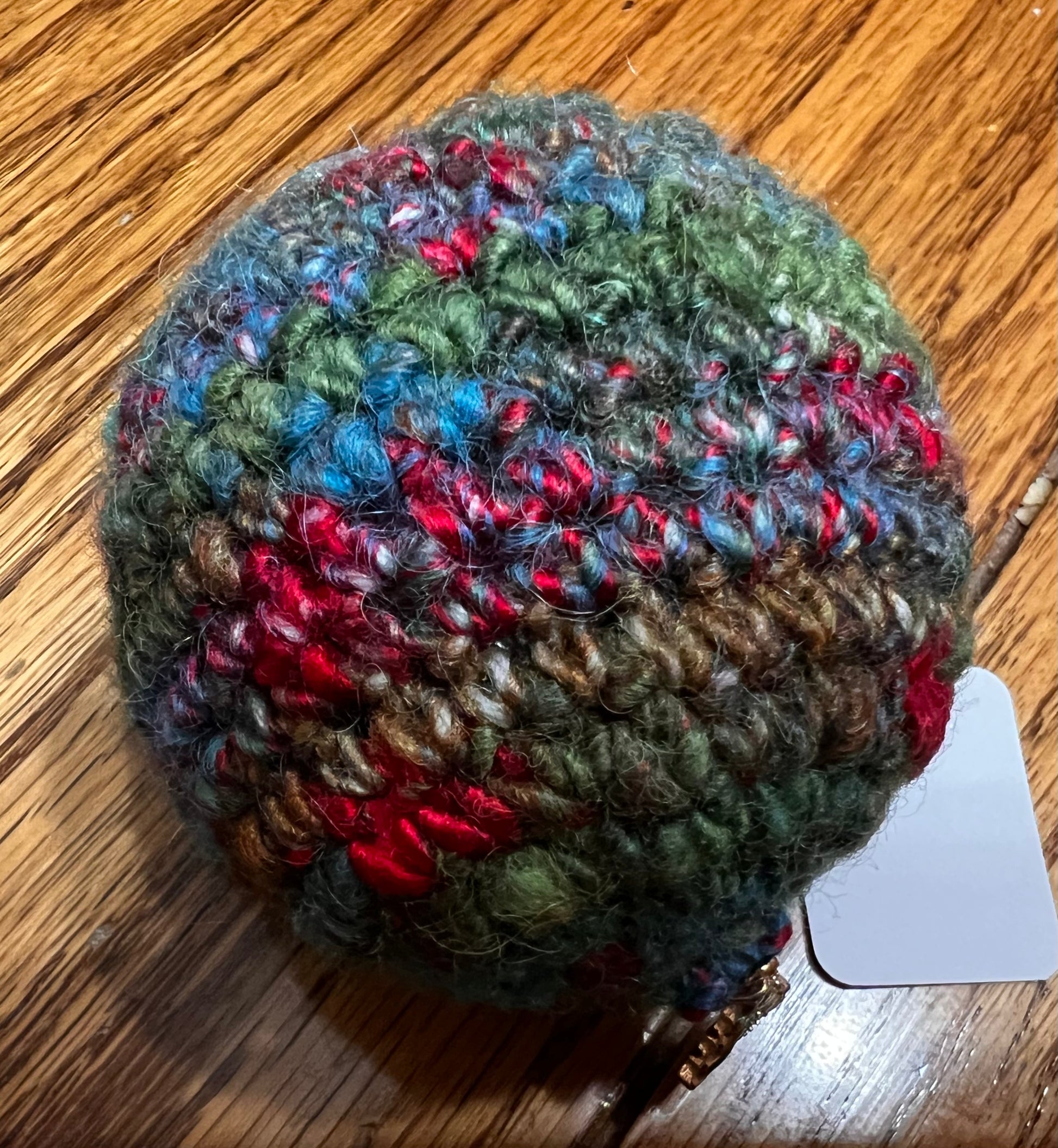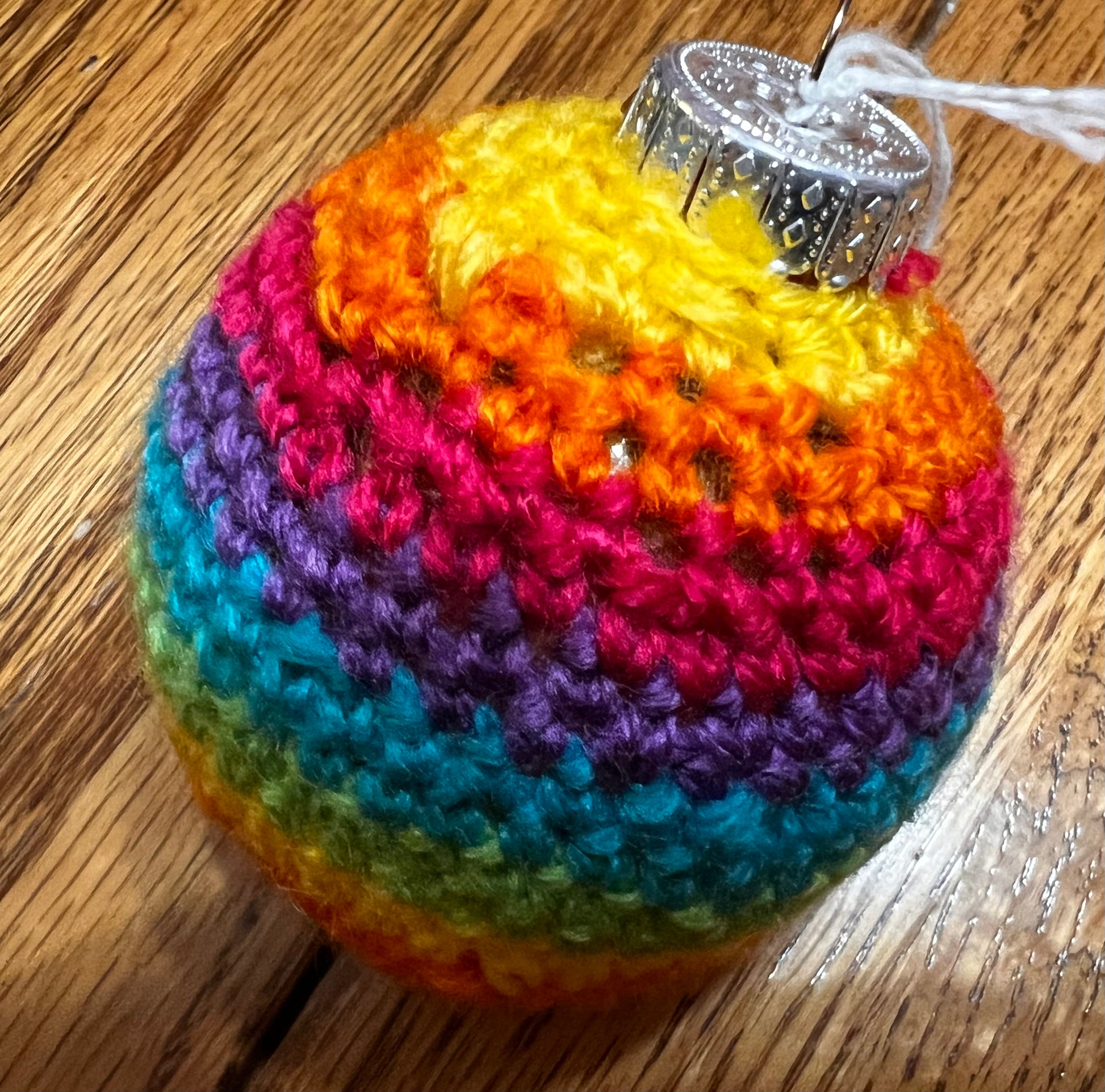 Interior acrylic form. Outer layer crochet wool. Several color combinations. Ready to hang.