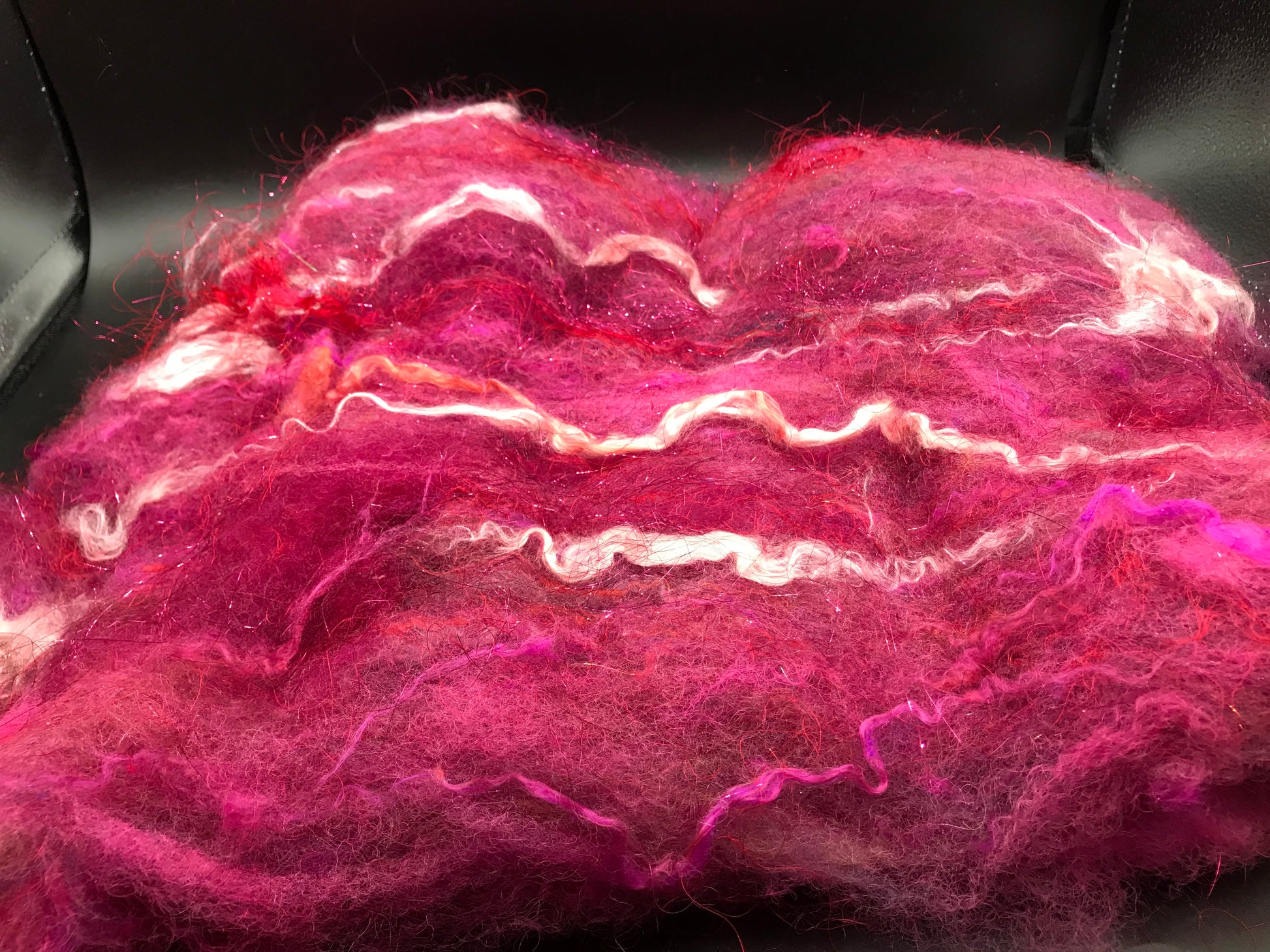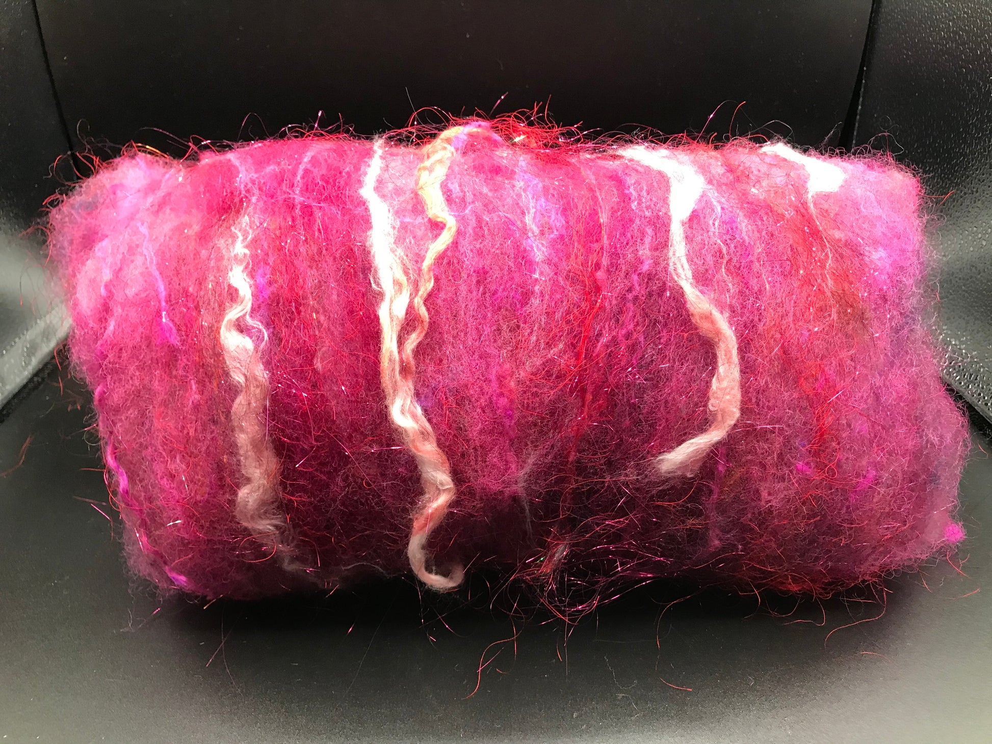 1 3/4 oz batt made from alpaca, wool, silk and Angelina. Festive color to add a special zing to your Christmas project.