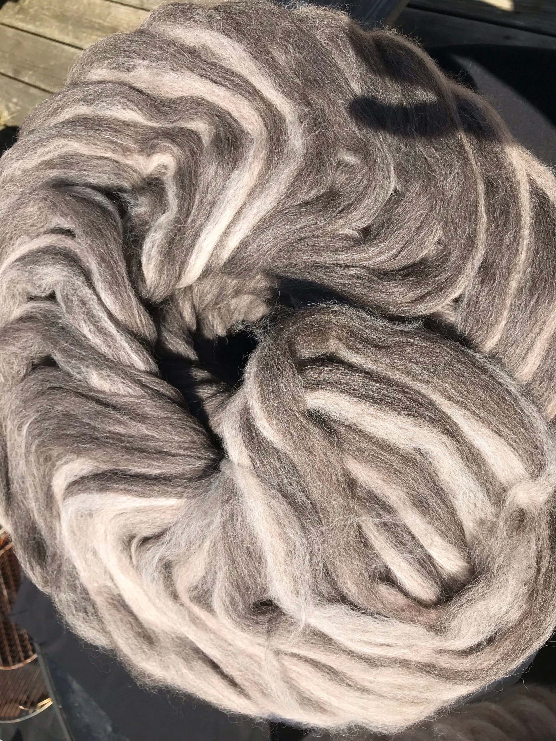 50/50 Shetland and Alpaca Easy to spin. Good for experienced spinners, beginners and those looking to put less stress in their hands. Spins quickly into fine, bulky and every thing in between.