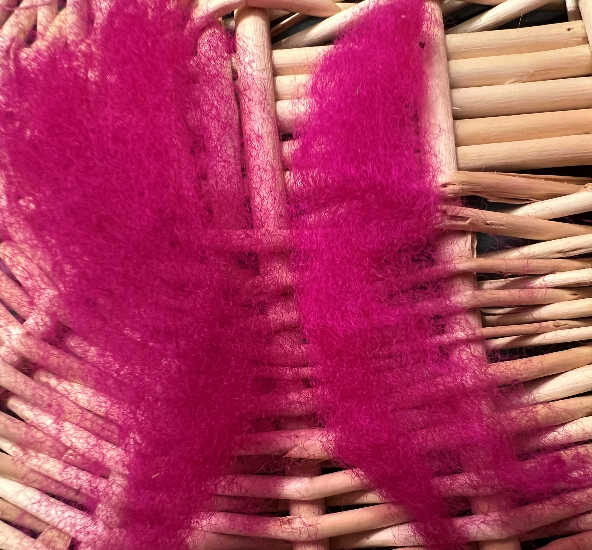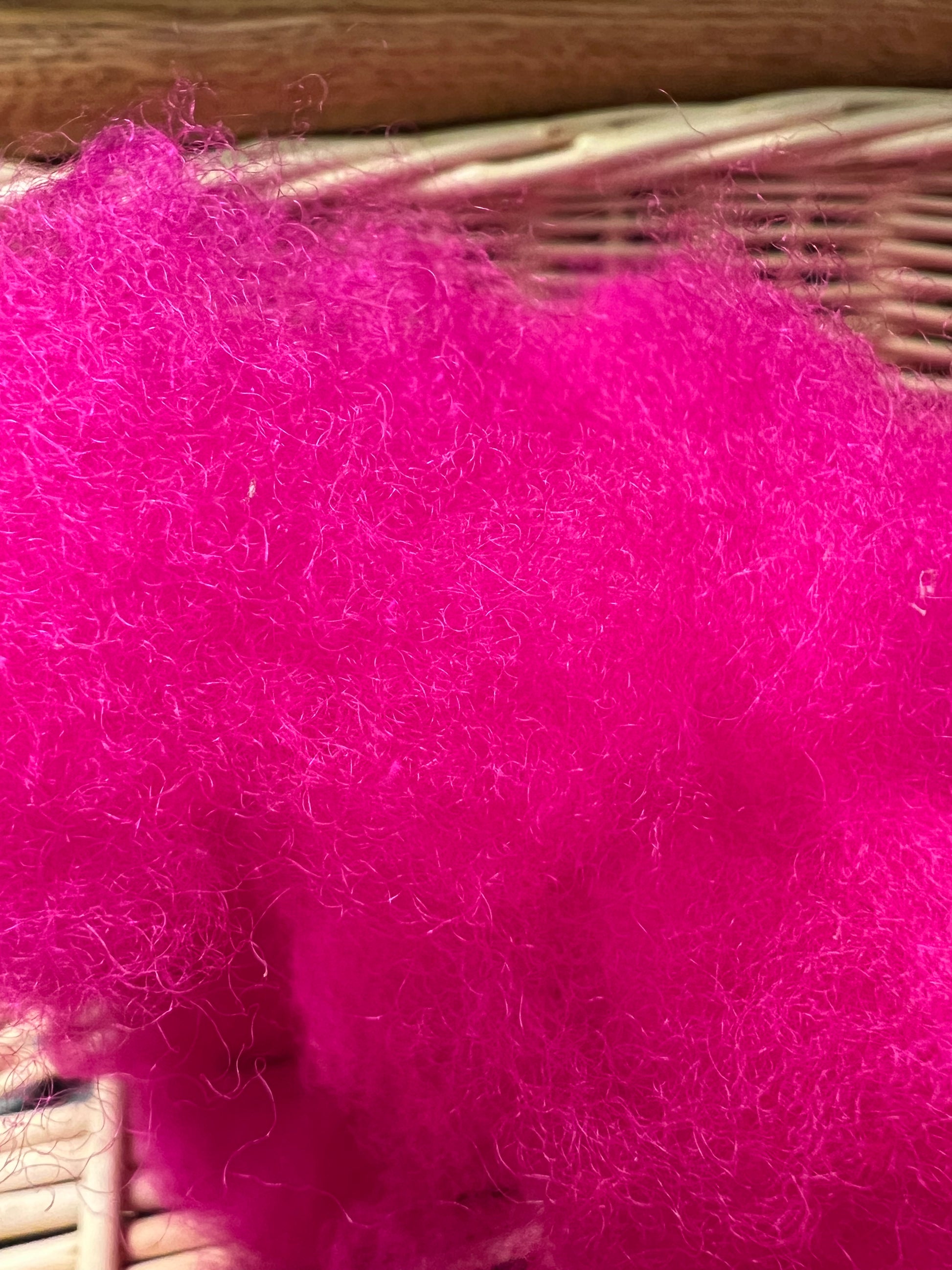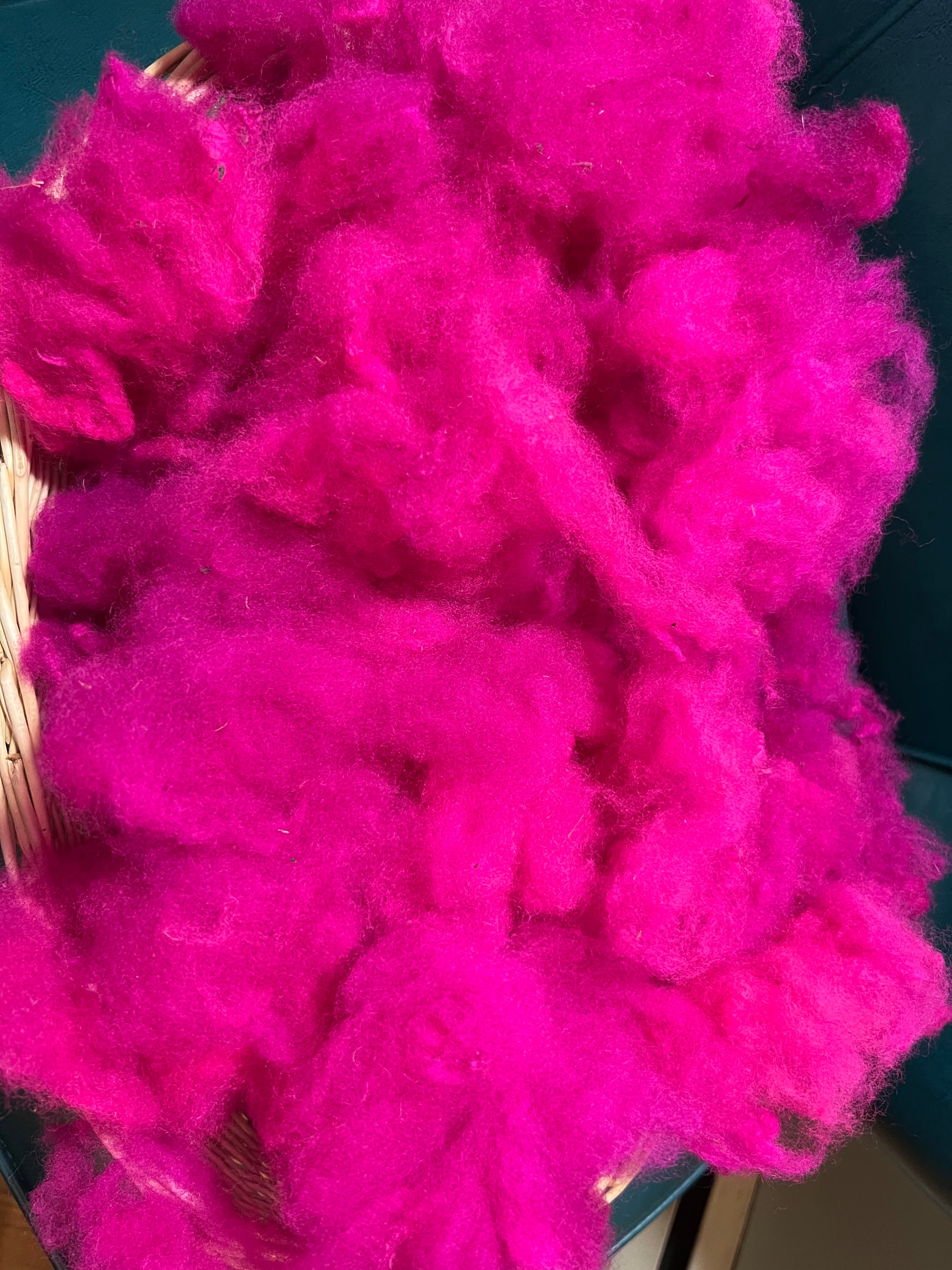 Hand picked fine wool cloud. Very soft. Spin directly from the cloud, card, felt and more. Vibrant results from multiple dye colors. Short staple. 3 1/2 Oz.