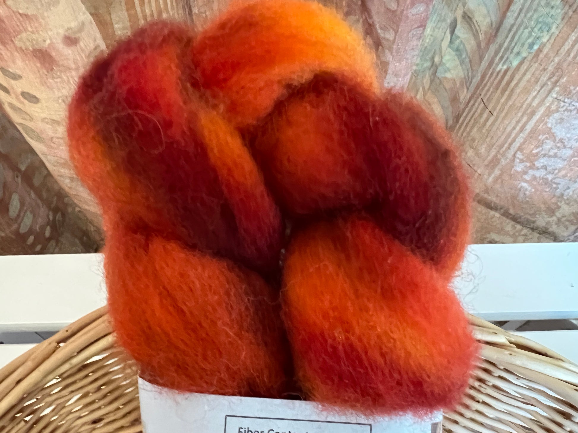 2 Oz of expertly dyed Teeswater Top will not bleed.  Long wool, Luxurious feel. Can be used for spinning, felting, making your own batts and more.