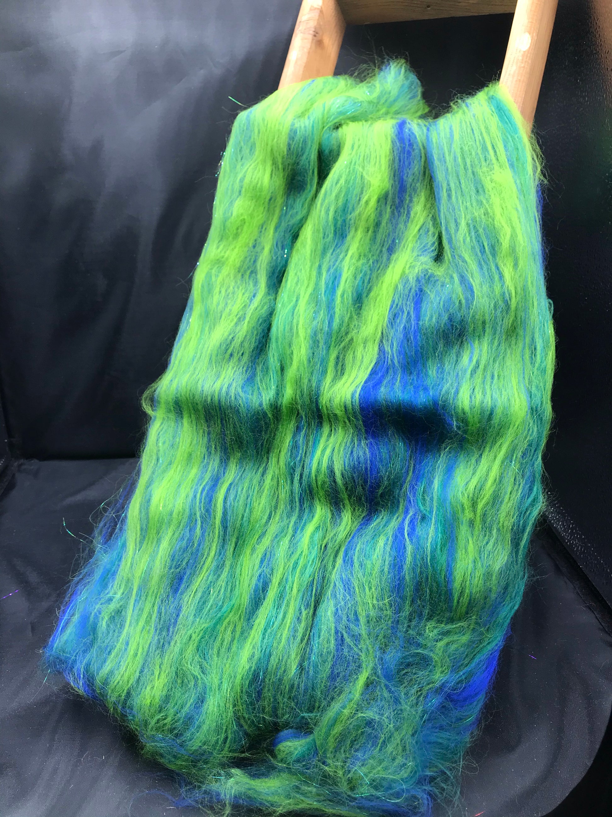 One of a kind ultra smooth fiber preparation. The Blues and Greens of Van Gogh lily pads. Created from Merino, Bamboo and Angelina. Luxuriously soft. Easy to draft. Free shipping 1 3/8 Oz.
