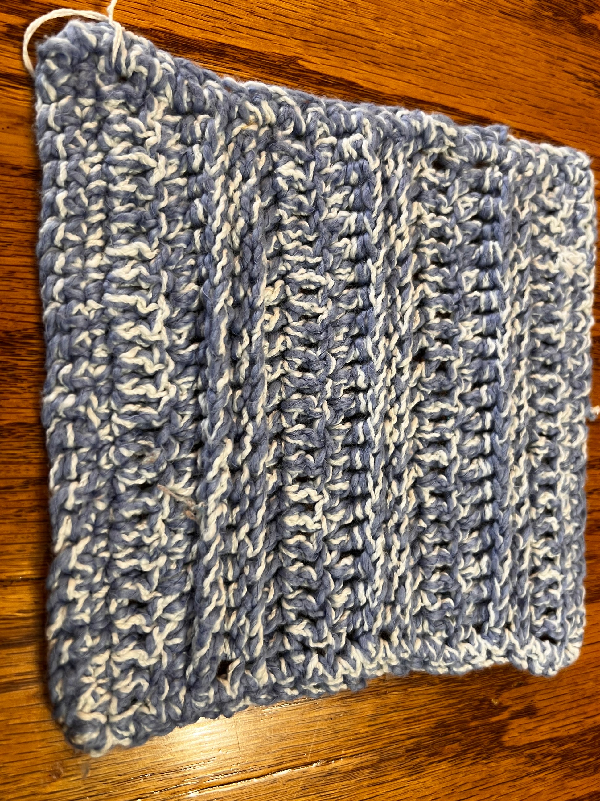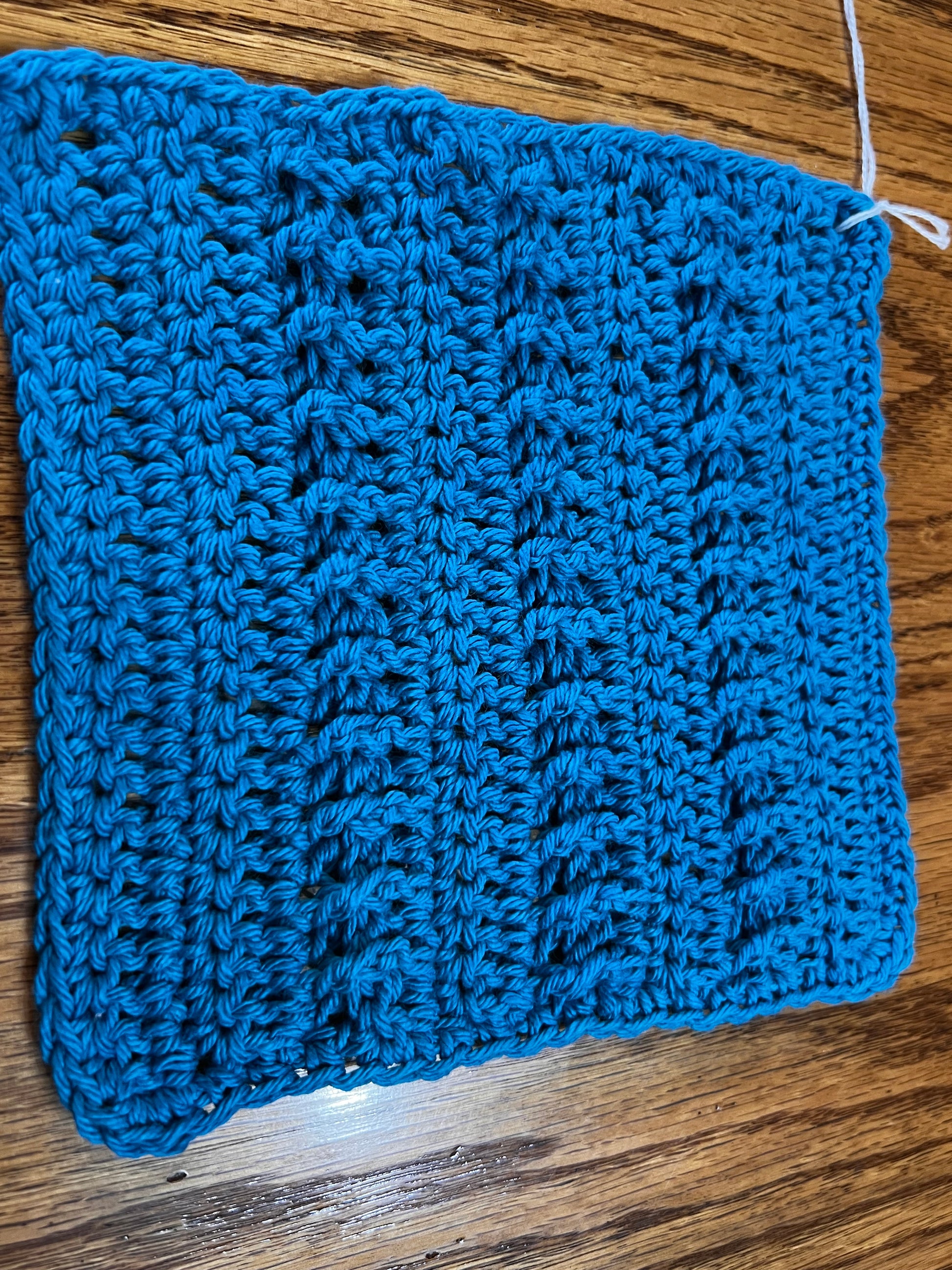 Crocheted in cotton. These cloths are textured for these most gentle exfoliation. I love using these cloths on my face every morning. 7”x7”.